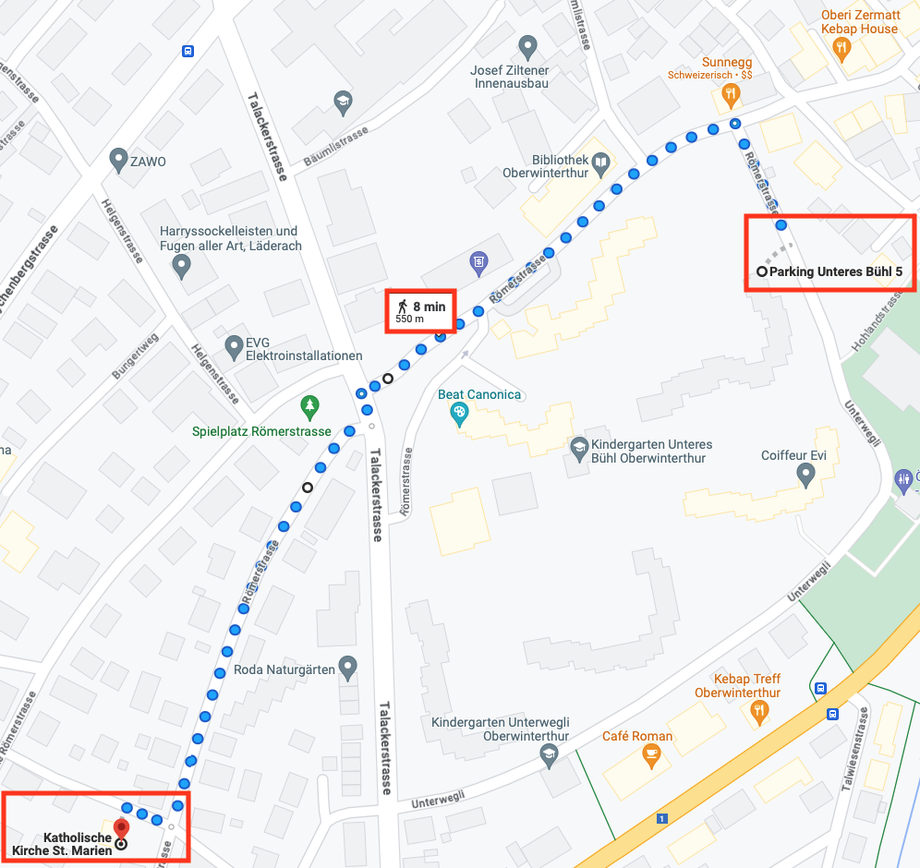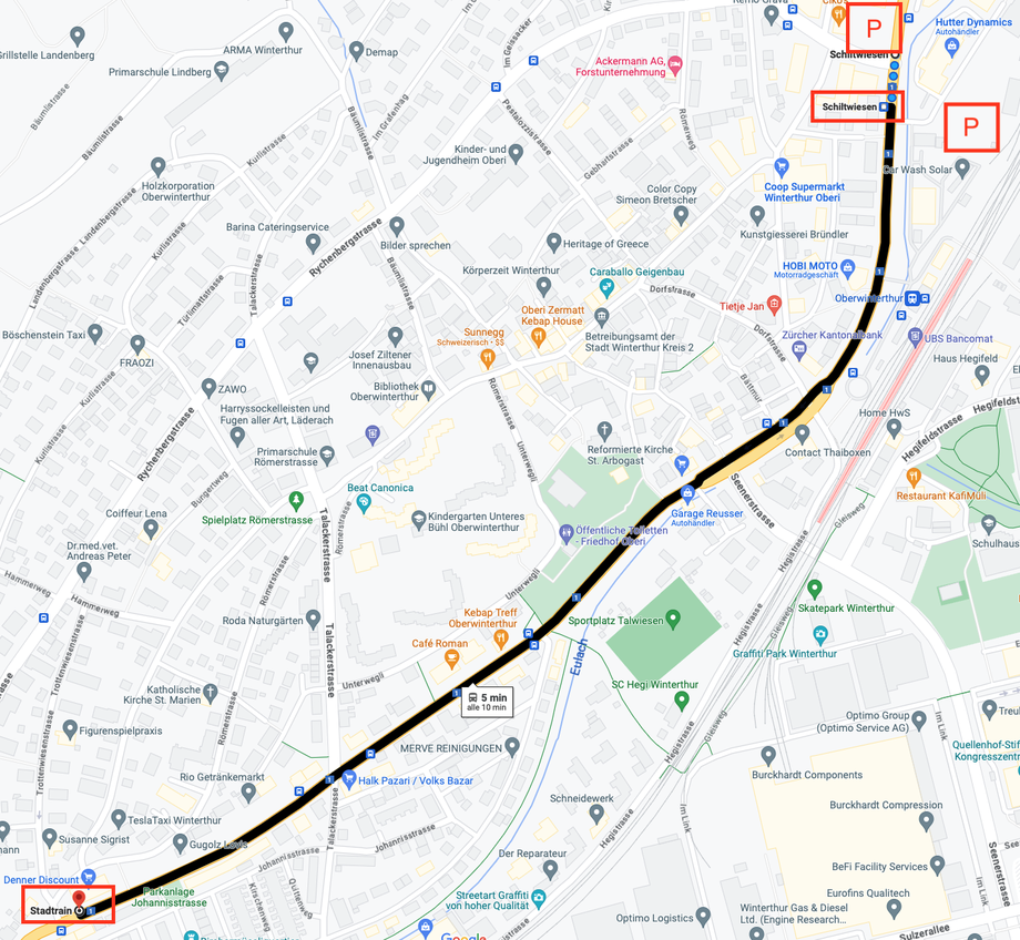 5min Busfahrt ab Haltestelle Schiltwiesen nach Stadtrain